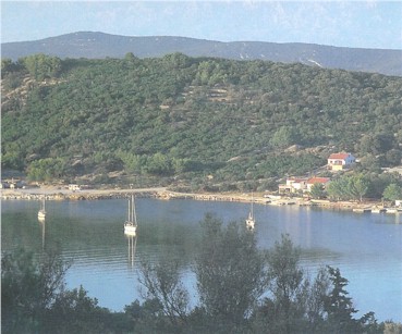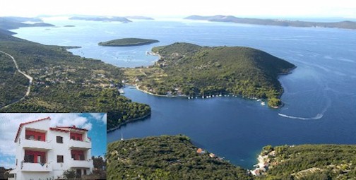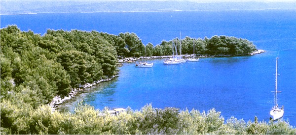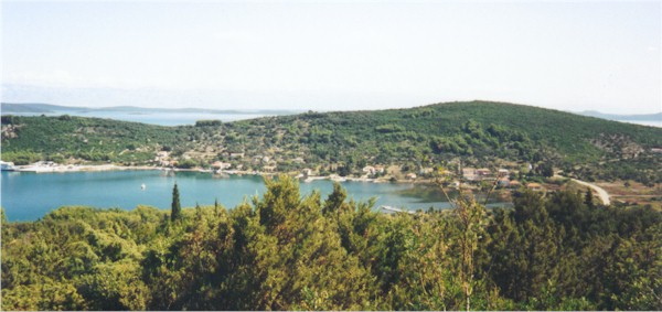 Bucht kann man unter Wasser die Mauerreste einer alten Meersaline entdecken. Hier befindet sich auch die neue Anlegestelle für die Fähre die Dugi Otok mit Zadar verbindet.